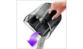 - Compartiment à poussière facile à vider: Le compartiment à poussière est idéalement conçu pour vous permettre de le vider sans créer de nuage de poussière. Grâce à sa forme exclusive et à sa surface lisse, la poussière s'accumule d'un côté du compartiment et glisse facilement dans la poubelle.